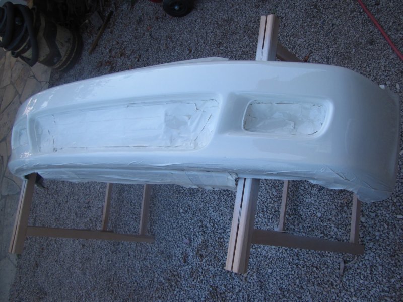 -Pendant ce temps apprêtage des ailes, pare-chocs et malle Ar ! ...sauf que le jour de la peinture mon pistolet a eu un problème et je me suis trompé de durcisseur ... la peinture n'est pas dégeux, c'est lisse mais il y a pleins de défauts (coulures car la peinture était trop trop fluide, pigments en surface ...etc) donc rebelote, ponçage et préparation pour la prochaine, le temps de recevoir la peinture et que je trouve une solution pour le pistolet ....